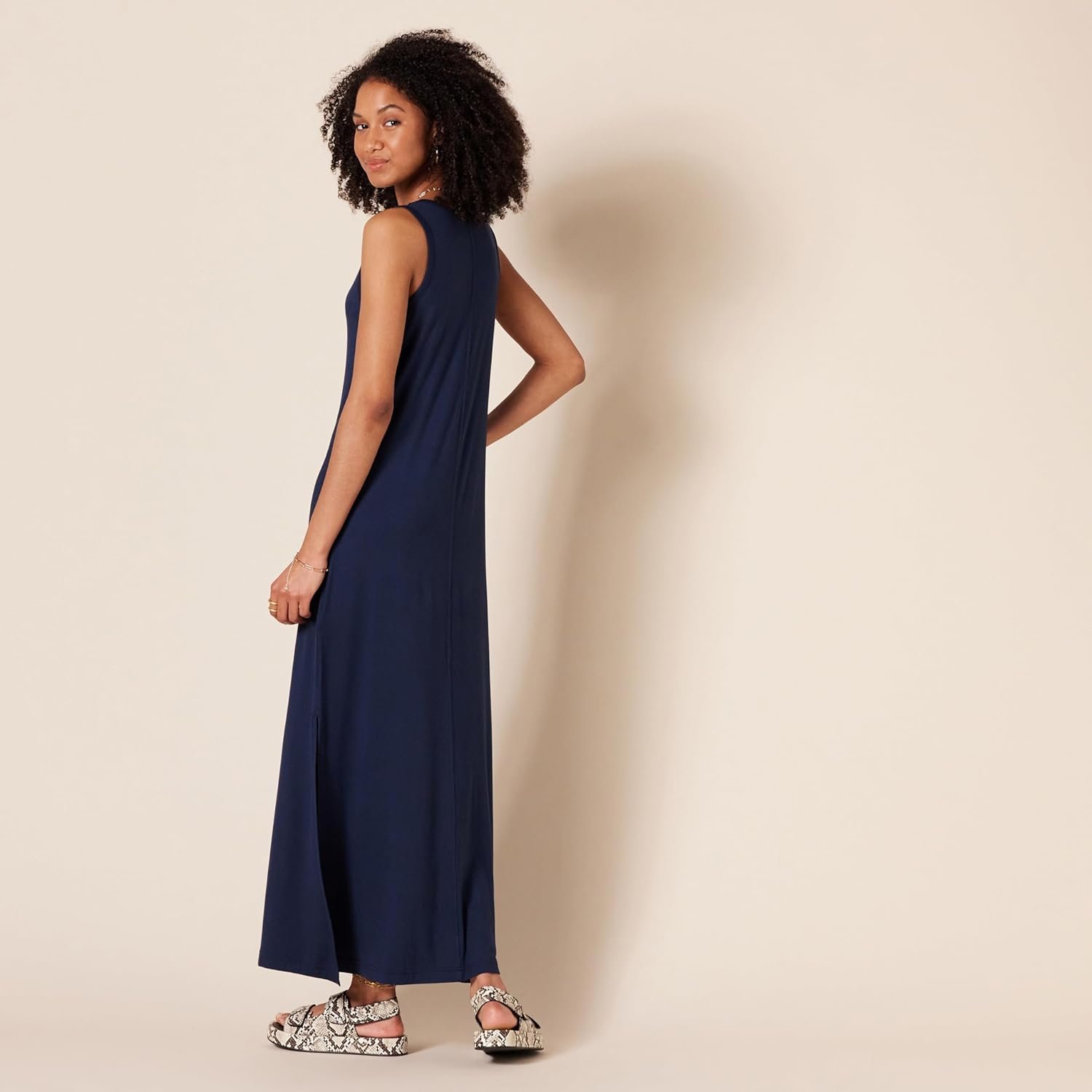 Amazon Essentials Women’s Side-Slit Jersey V-Neck Maxi Length Dress