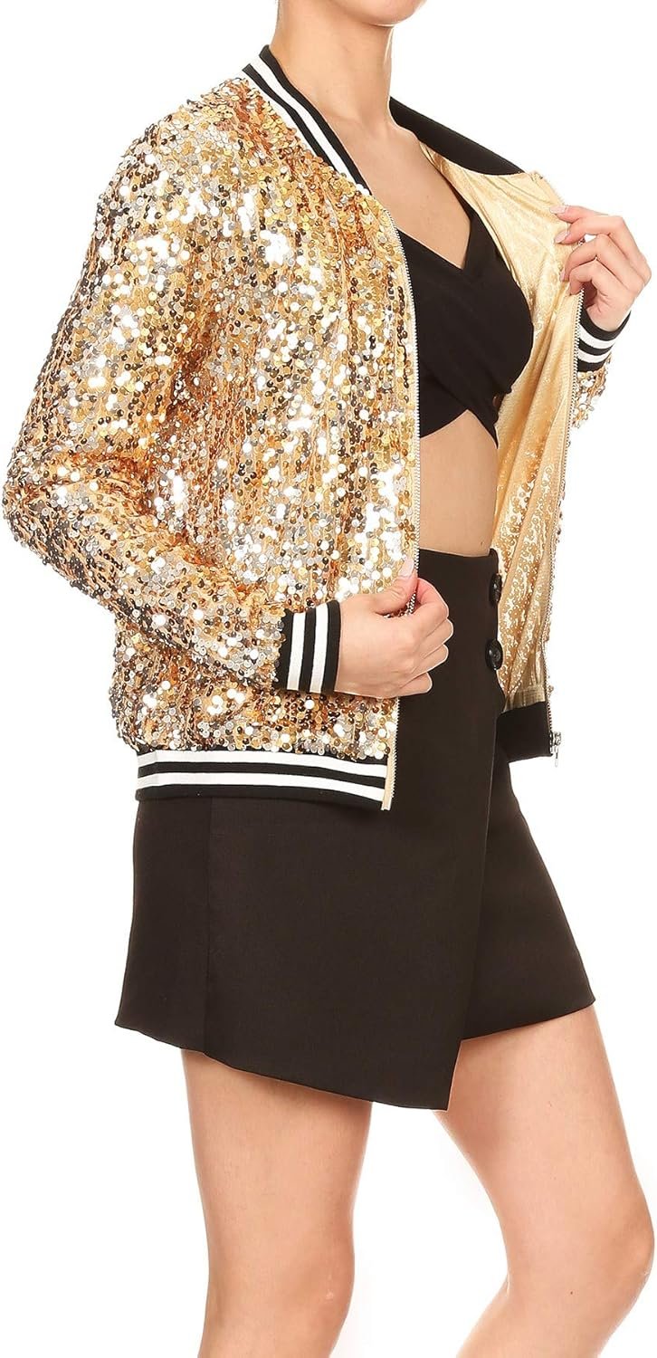Hooded Sequin Bomber Jacket