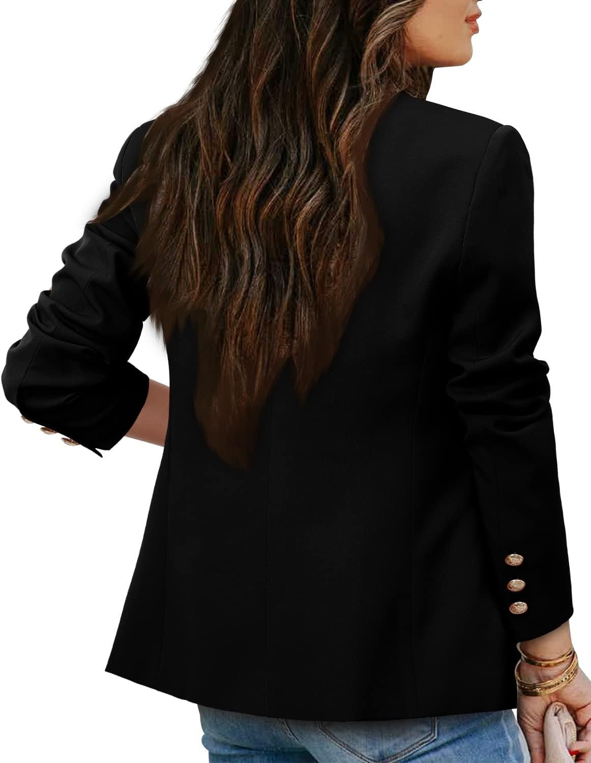 CRAZY GRID Womens Casual Blazer Jacket Gold Button Long Sleeve Work 0ffice Blazer Lapel Open Front Jacket