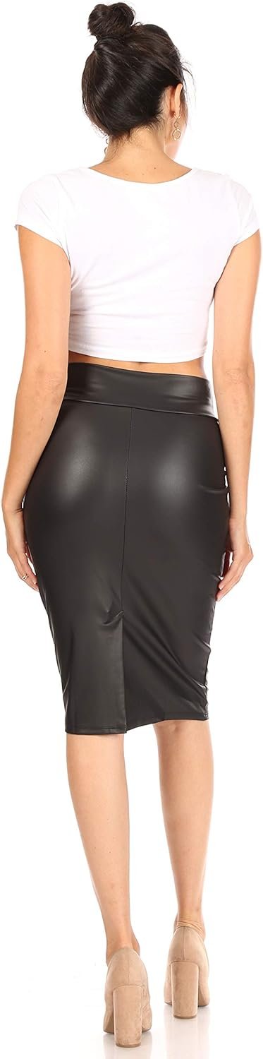 STYLE- Slim fitting faux leather pencil skirt with a back slit.