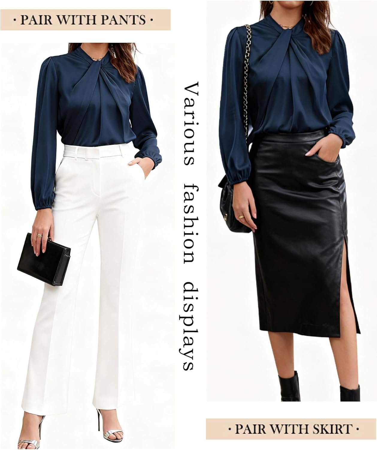 grace karin women's long sleeve satin blouse,mock neck work silk shirts,dressy tops for business casual officeGRACE KARIN Women’s Long Sleeve Satin Blouse,Mock Neck Work Silk Shirts,Dressy Tops for Business Casual Office