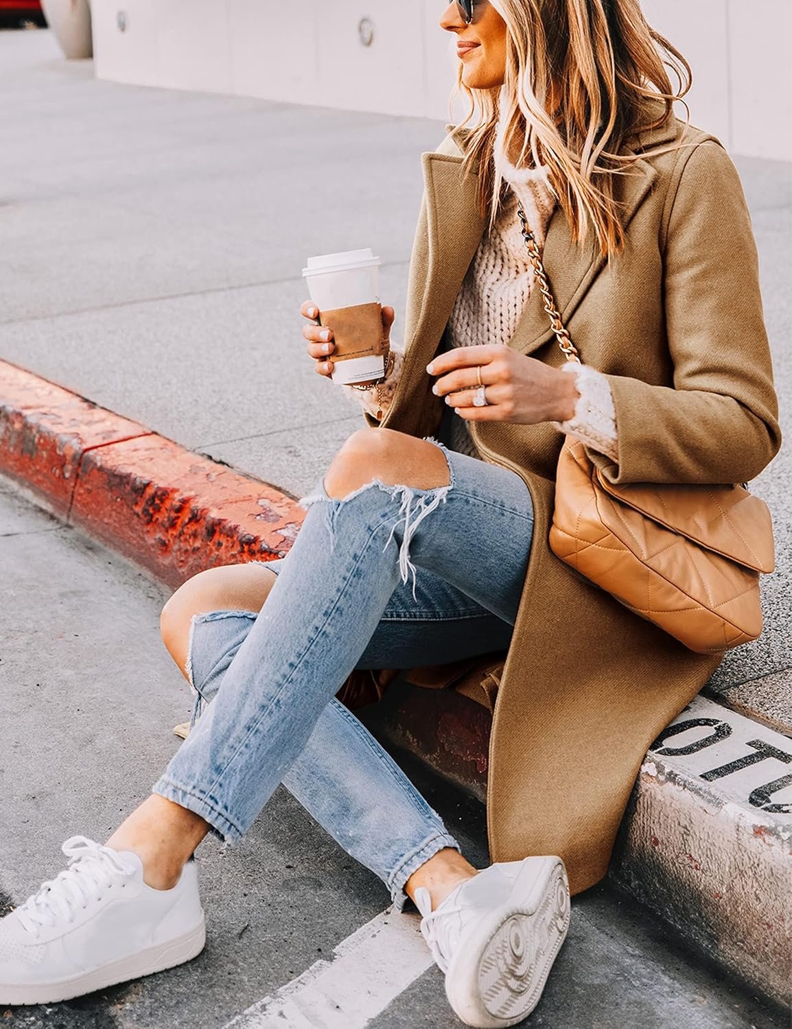hooever women's winter wool coat casual notch lapel single breasted peacoatHooever Women’s Winter Wool Coat Casual Notch Lapel Single-Breasted Peacoat