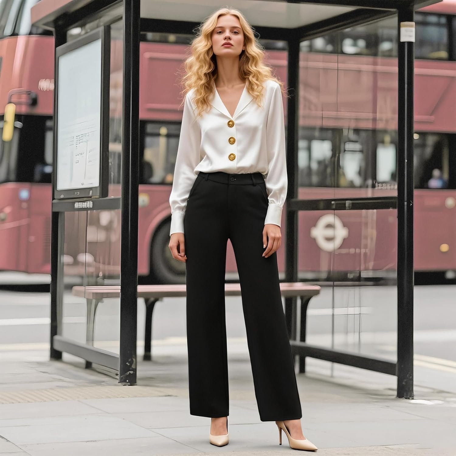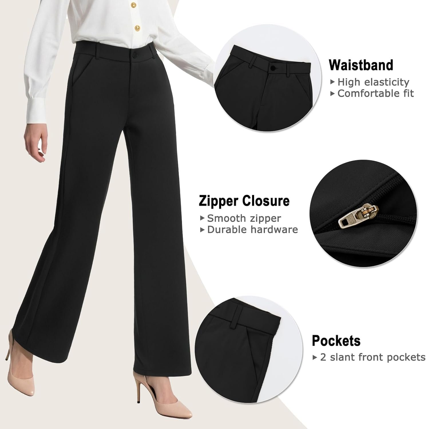 Make these Women’s High Waisted Wide Leg Pants a staple in your wardrobe, available in both wide leg dress pants and straight leg trousers for women.