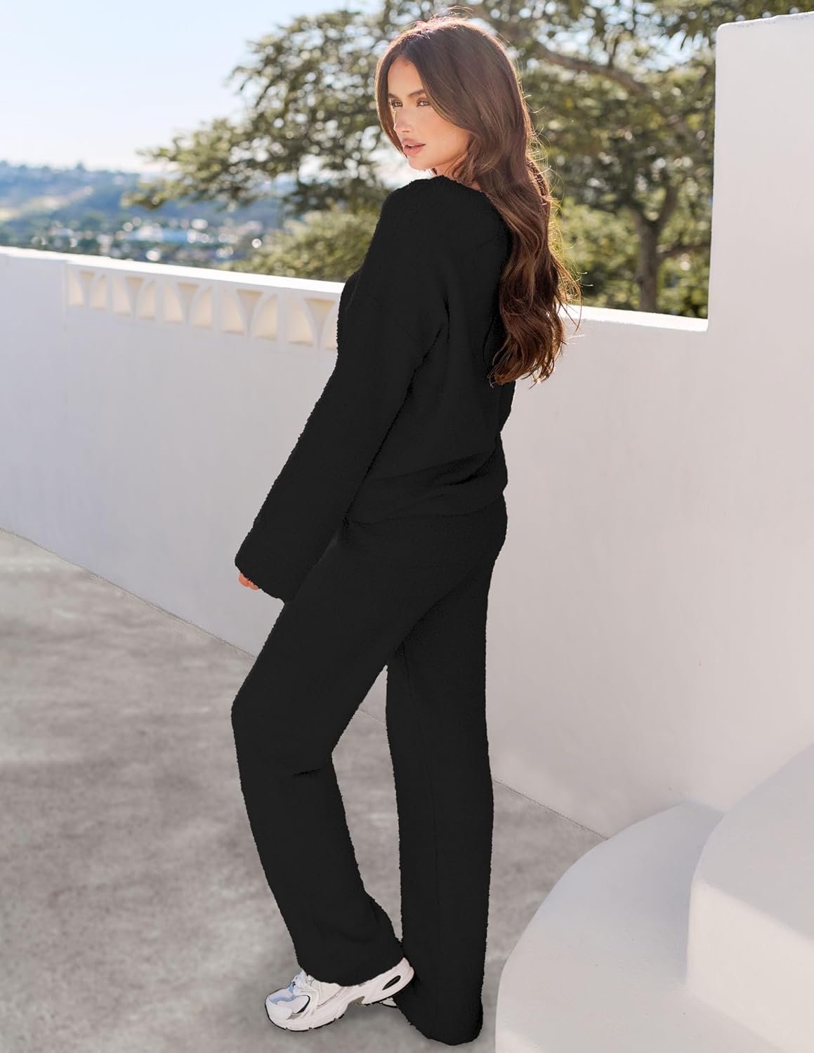 MEROKEETY Women’s Lounge Sets 2026 Fall Fashion 2 Piece Outfits Sweater Pajama Set Fuzzy Loungewear Matching Winter Clothes