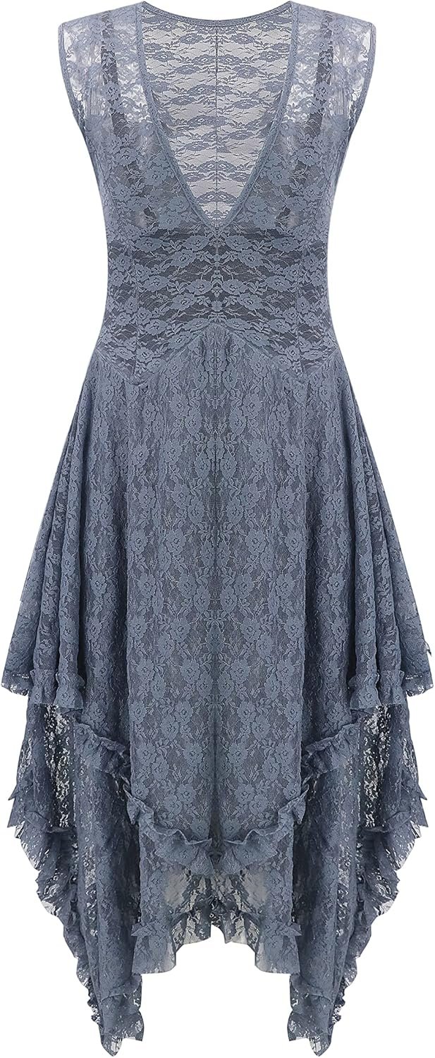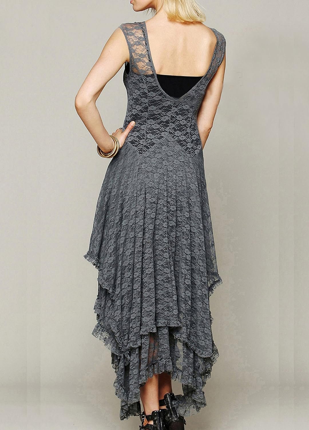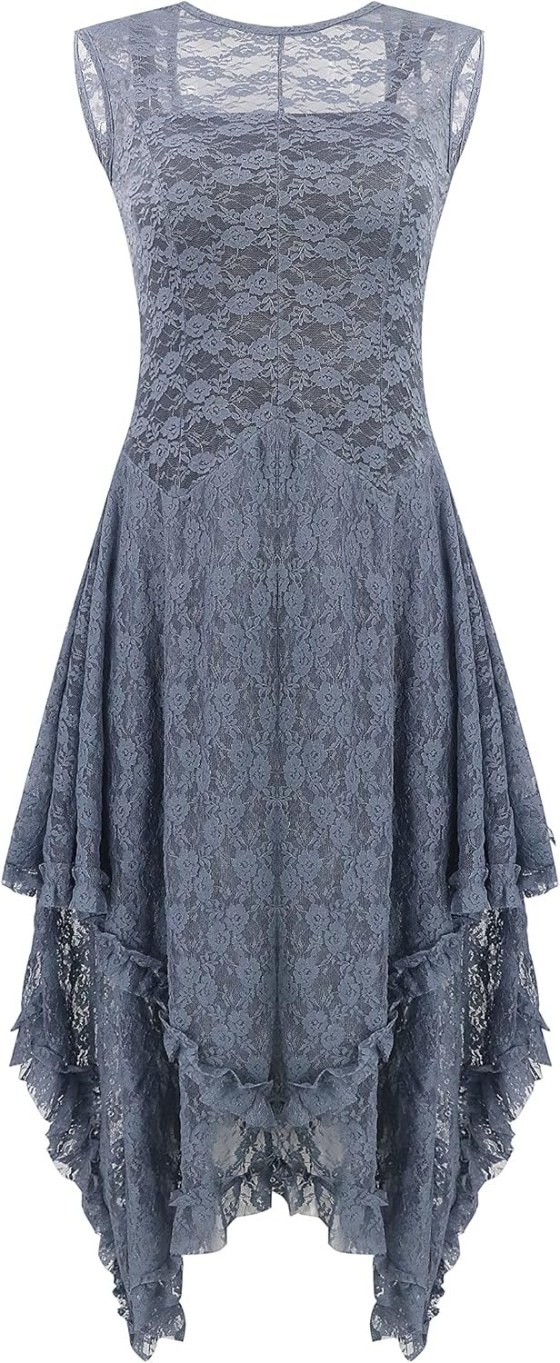 The video showcases the product in use.The video guides you through product setup.The video compares multiple products.The video shows the product being unpacked. Women sleeveless asymmetrical lace dress with slip Merchant Video