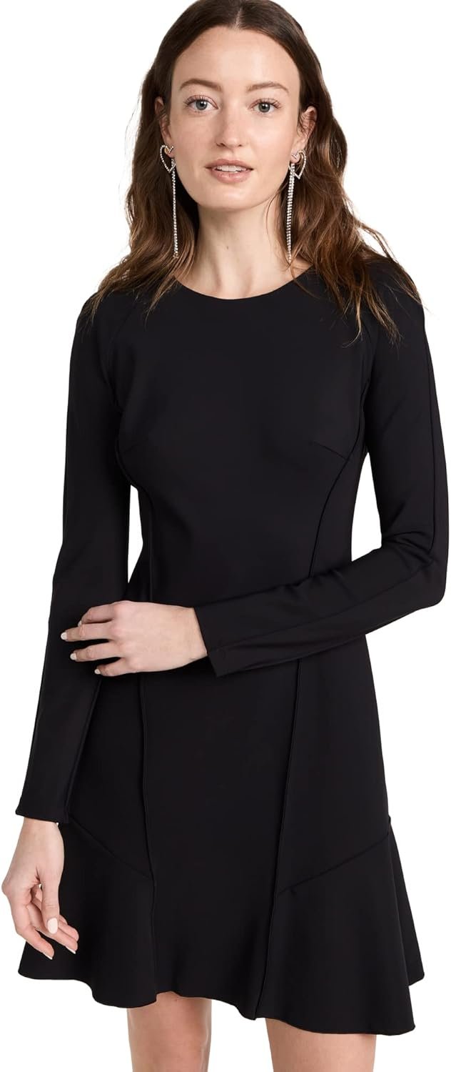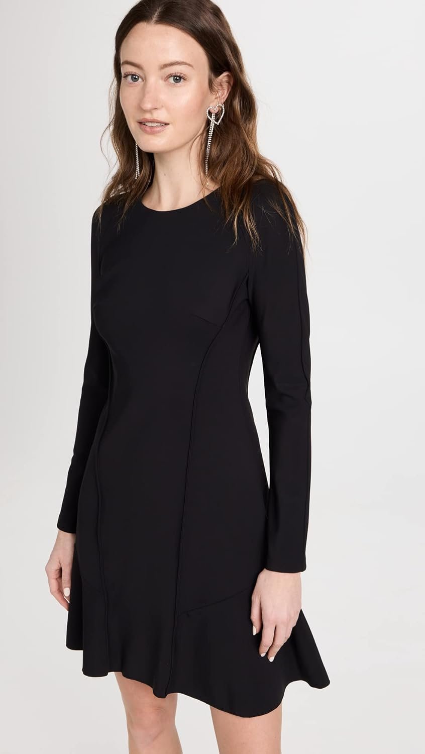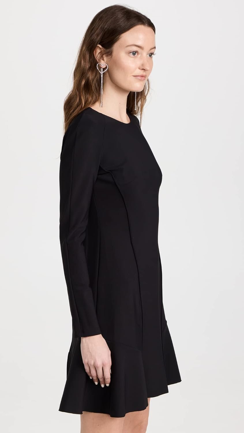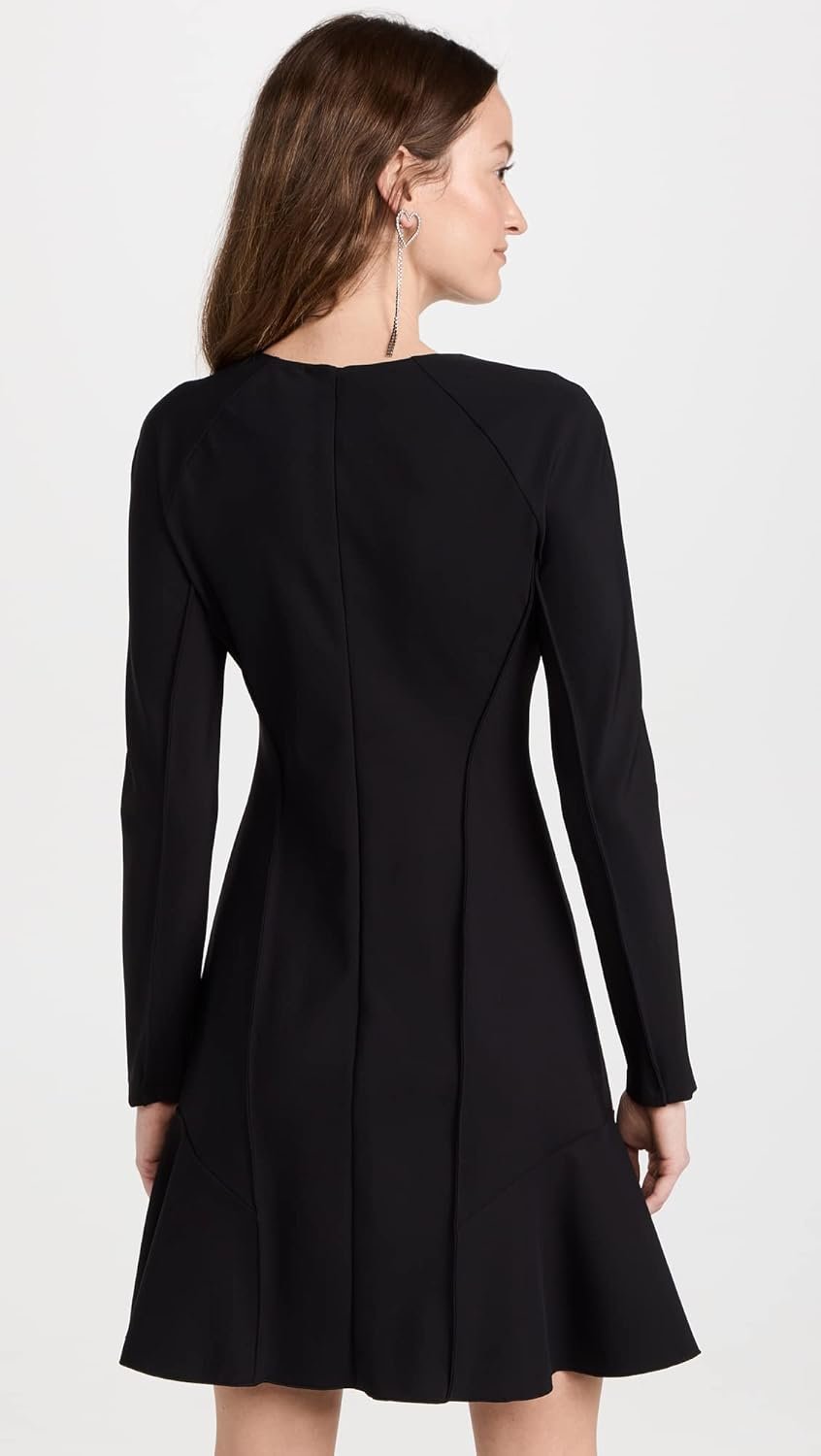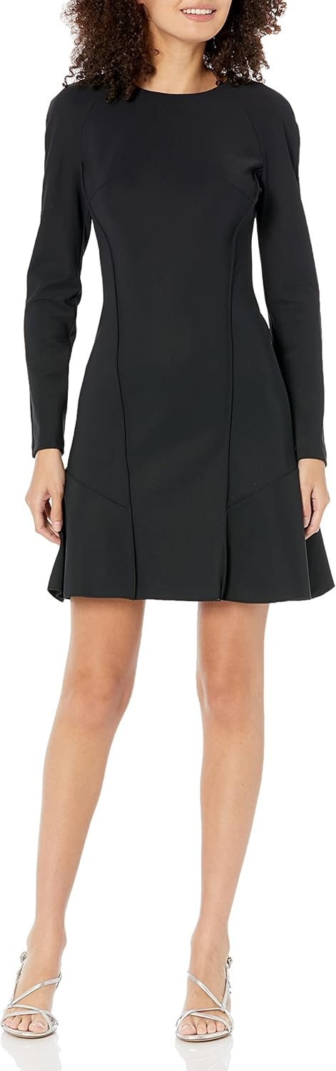 A long sleeve ponte dress with seaming detail and CB zipper closure.