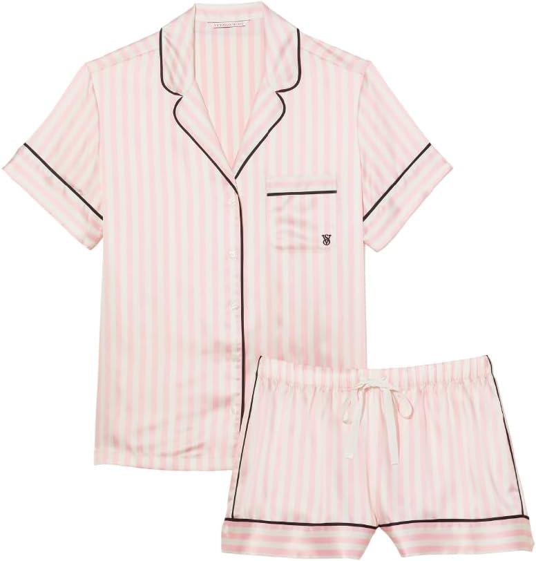 Victoria’s Secret Satin Pajama Set, Short Sleeve Button Down Shirt & Shorts, Sleepwear for Women (XS-XXL)