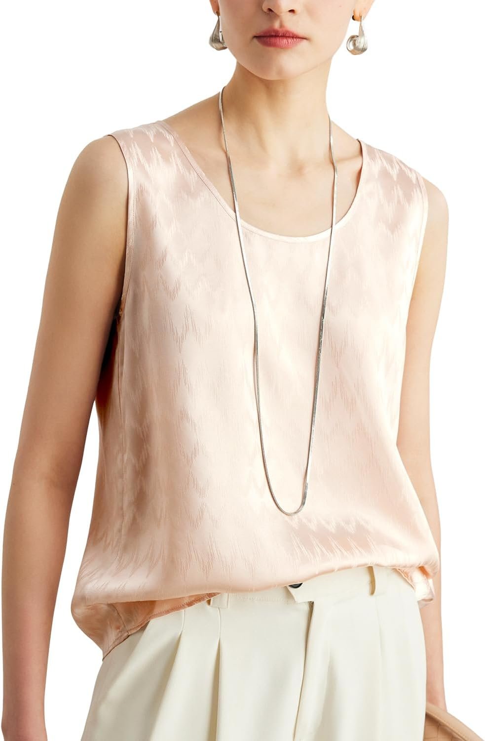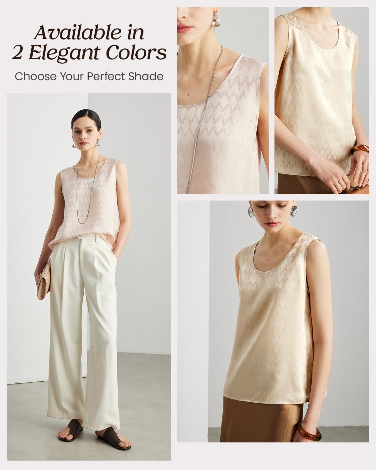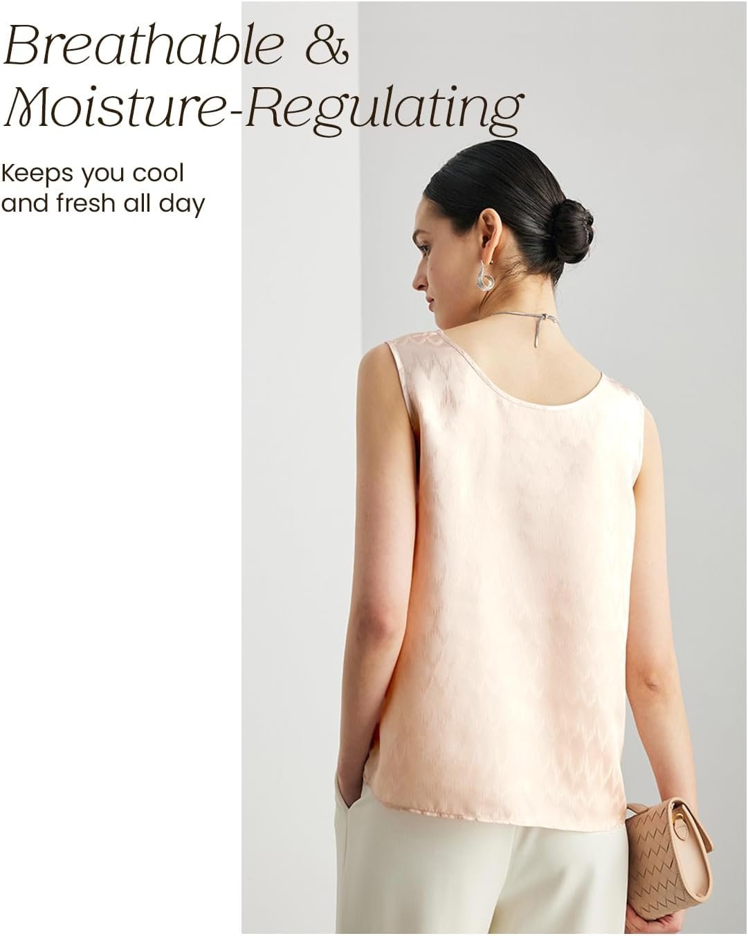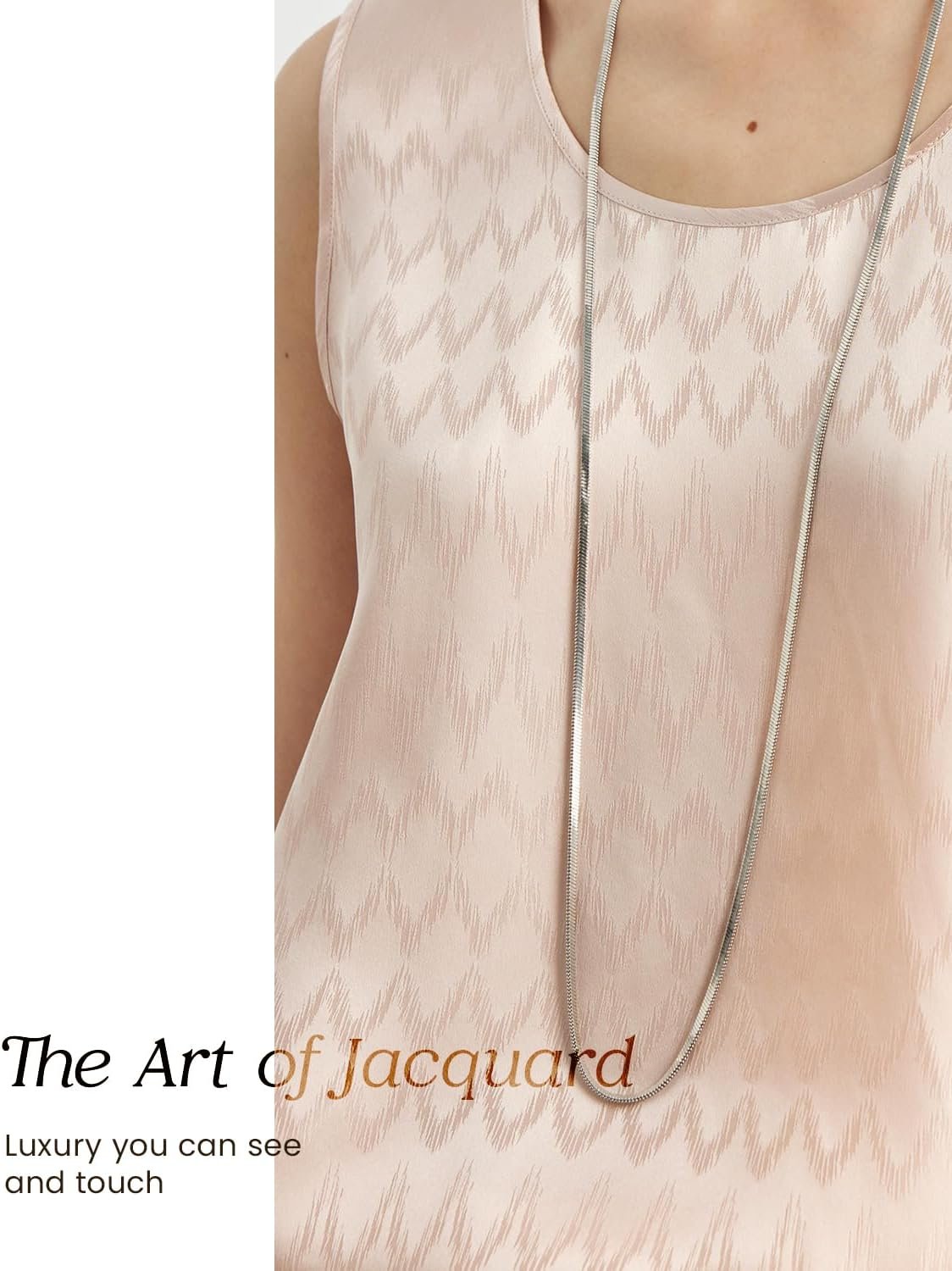 Womens 100% Mulberry Silk Tank Top – 22 Momme Silk with Jacquard Design, Loose Fit Casual Flowy Sleeveless Top Outfit